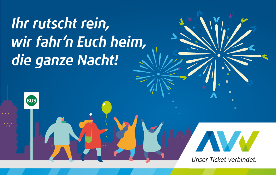 Nach einem hoffentlich gelungenen Start ins neue Jahr bringen die AVV-Nachtlinien die Bürger und Bürgerinnen der Region zuverlässig nach Hause.