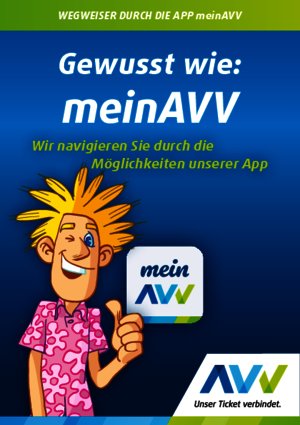 Wegweiser für die App meinAVV Fahrtauskunft, Ticketkauf, Ticketanzeige, Deutschlandticket, Mobliitätsbudget, AVVswipe, Verkehrsmeldungen, Einstellungen u.v.m.